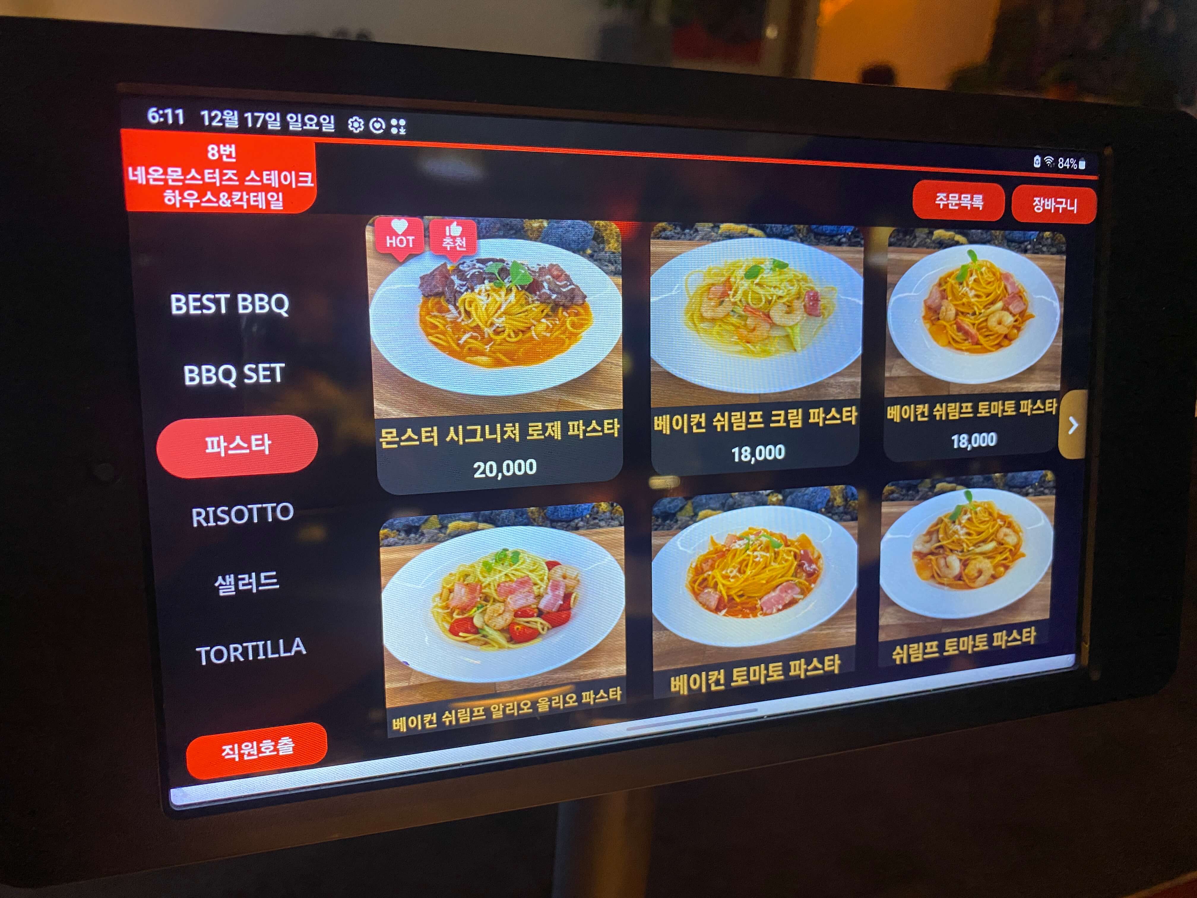 저희는 주문한 메뉴는 4인 기준에